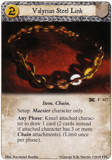 Setup. Maester character only. Any Phase: Kneel attached character to draw 1 card (2 cards instead if attached character has 3 or more Chain attachments). (Limit once per phase).