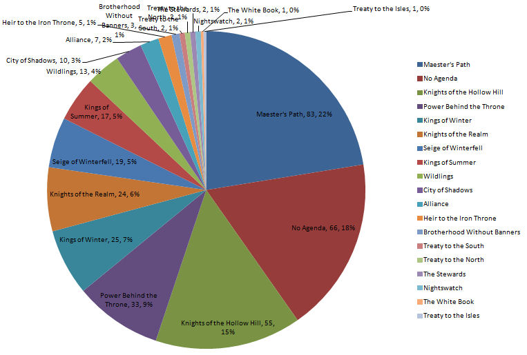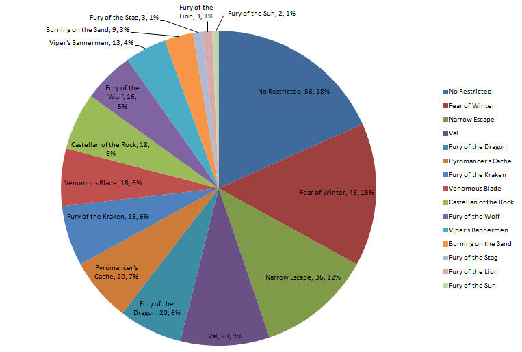 I'm pretty curious about the Clash of Arms cycle and its impact as well. Particularly for those houses who don't have an in house restricted option. If you're playing Targaryen or Stark for instance and don't have access to a Fury, what do you play? It's not as clear cut with a go to restricted card as some of the others, though many people default to Narrow Escape, I'd think.