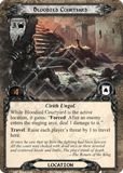 While Bloodied Courtyard is the active location, it gains: “Forced: After an enemy enters the staging area, deal 1 damage to it.” Travel: Raise each player’s threat by 1 to travel here.