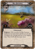 Response: After you travel to Bee Pastures, search the encounter deck and discard pile for Grimbeorn the Old and add him to the staging area. Then shuffle the encounter deck.