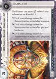 The Runner can spend [click] to break any subroutine on Kamali 1.0. [subroutine] Do 1 brain damage unless the Runner trashes an installed resource. [subroutine] Do 1 brain damage unless the Runner trashes an installed piece of hardware. [subroutine] Do 1 brain damage unless the Runner trashes an installed program.
