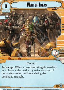 Not only that, but War of Ideas both only works for army units, and only effects command icons (not the ''Golden Hammer' from the Warlord). So exhausting for a legal effect like Know No Fear still wouldn't work.