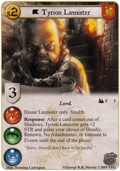 A boatload of Allies call House Lannister home, so watch out for trait-hate. In particular, Varys (SaS) and Ser Jorah Mormont (WLL) have passive abilities that cannot be canceled.