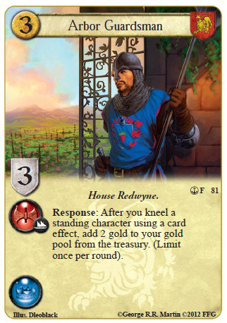 I’m going to wait until the third chapter pack of the next cycle to cover these agendas more in-depth, but recent cards like Arbor Guardsman (TCC) and spoiled ones like Ser Barristan Selmy, Ser Jaime Lannister, Ser Preston Greenfield, and Ser Arys Oakheart are cause for optimism. One the other hand, the fourth pack contains a prompt counter to such hopes and dreams in the form of Ygritte, who can “borrow†neutral characters. In the meantime you can check out the discussion thread.