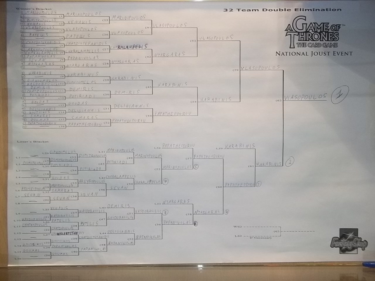 Only 4 players were left in the winners bracket. My opponent was one of the best players here in Greece playing his famous Targaryen Burn The Maester's Path (GotC) that took down a lot of tournaments in Greece. One of these tournaments and his deck is detailed in the 2nd copy of our newspaper the Free Iron Throne.