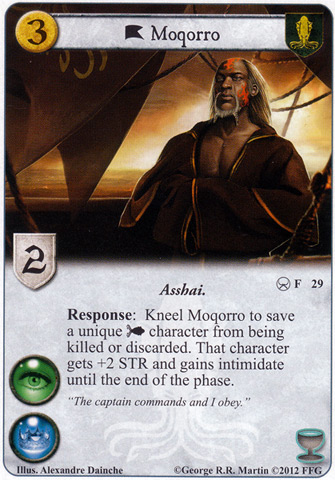 Moqorro (VD) -We'll ignore the whole wrong god thing because his ability is so wonderfully Greyjoy. Taking a character who should be dead and instead making them a big angry monster is very good, especially against burn.