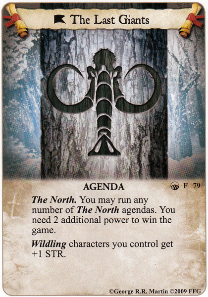 You maybe wondering why this is here and I originally wouldn't have put the the Wildling related agendas this high up however after some discussion with WWDrakey he pointed me to several past Martell decks with a Wildling focus that have seen success. The meta has moved on with the release of new cards and new agendas but from my quick reading this deck type hasn't been broken and could be still viable.